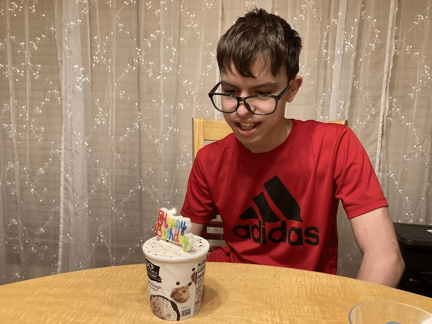 Luke requested ice cream rather than cake. Because it was his birthday, he got a whole carton to himself.