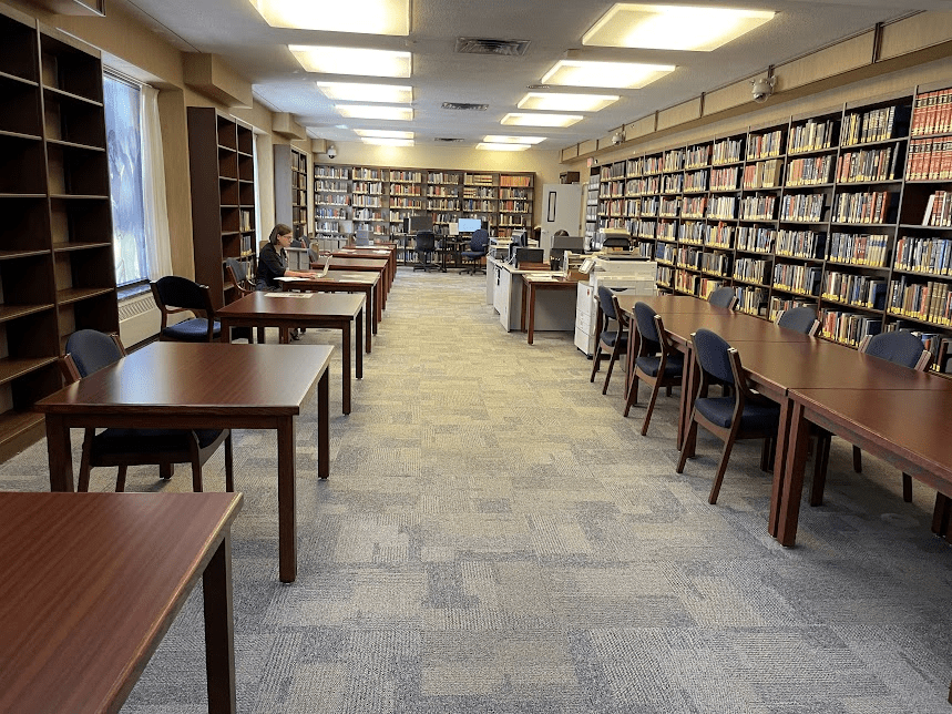 They are very strict about what you can bring into the research room (pictured above). Forbidden items include, but are not limited to: food and drink, pens, smoking and vaping equipment, bags, coats, and books. (My father was prohibited from bringing in his Sunday School leader guide) Permited items include and ARE limited to: your body, your clothes (but not outerwear), computers, phones (on silent), pencils, single sheets of paper (barely), and flatbed scanners. (My father was instructed to leave his light jacket in the provided locker in the lobby, where we also left my backpack and my father’s Sunday School leader’s guide.)