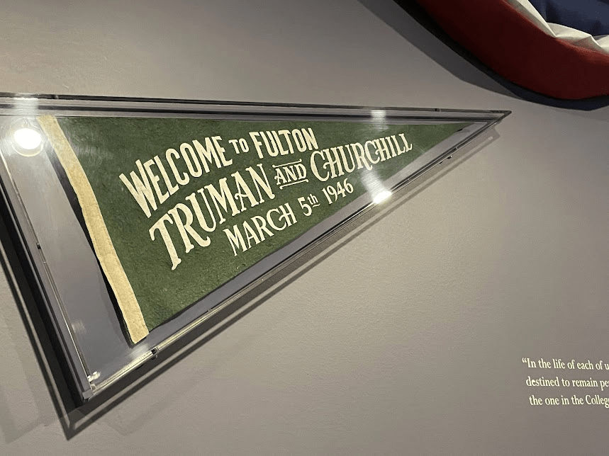 The reason there is a Churchill museum in Fulton is as follows: In 1946 Truman and Churchill both visited the campus of Westminster College. After being introduced by Truman, Churchill gave his famous “Sinews of Peace,” aka “Iron Curtain” speech. He declared, “An iron curtain has descended across the continent,” in response to Russia enforcing Communism in the formerly Nazi-occupied countries in Eastern Eroupe.
