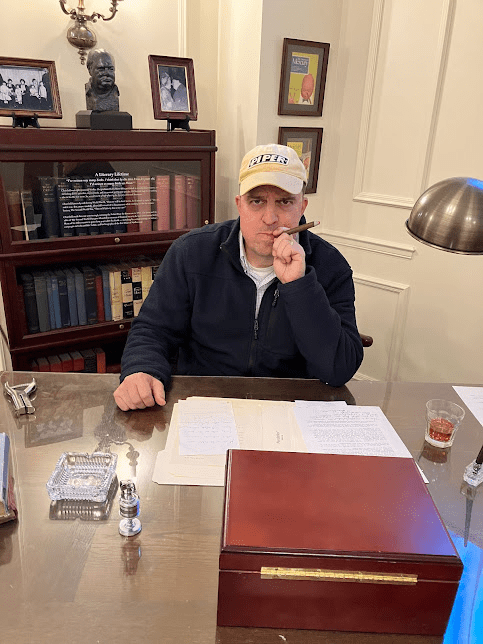 They had a replica of Churchill’s desk. My father attempted to frown.