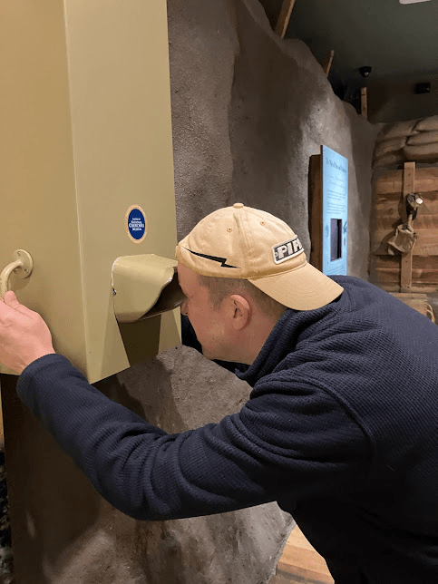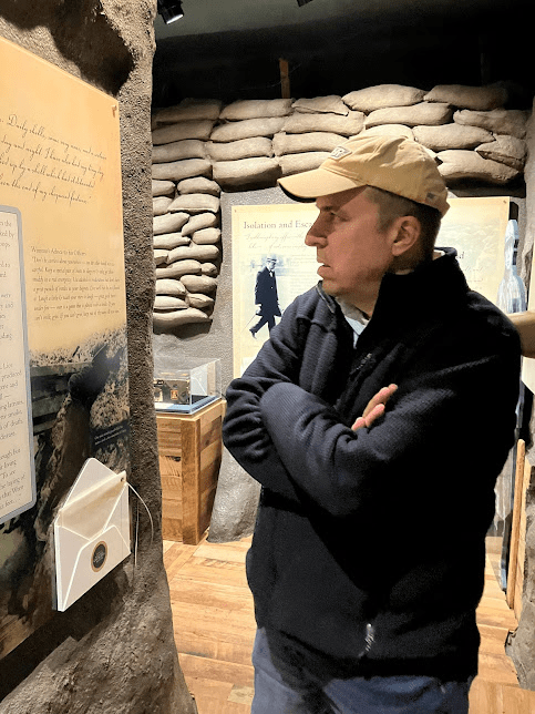 The museum chronologically went through Chuchill’s life. Here, Father views a WWI exhibit.