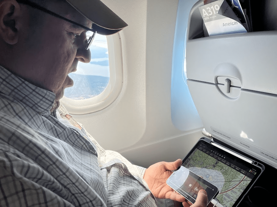 On this flight, my father was able to watch a Mets game in addition to following our path.