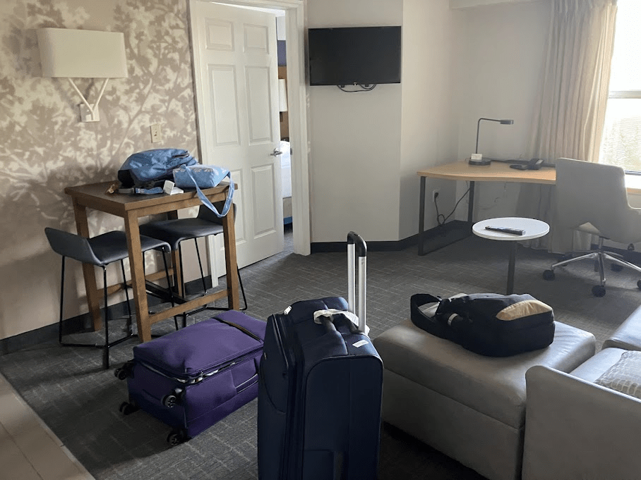 We stayed at a hotel called Residence Inn Greenbelt. I thought it was very nice. All the rooms there are suites. Our’s had a full size fridge and dishes, which was very convenient.