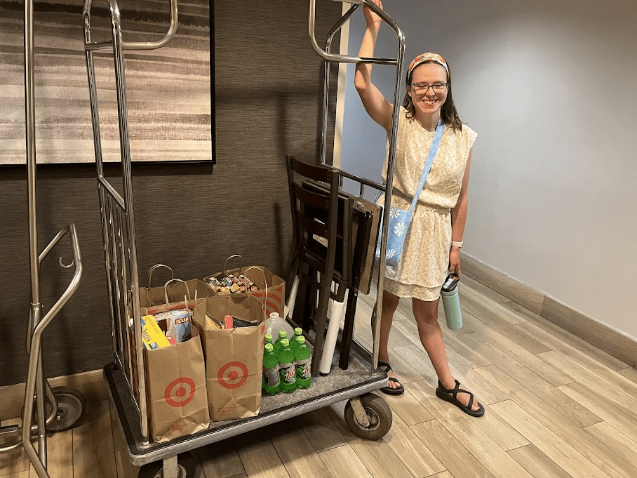 We also got food at Target (primarily TV dinners), which we brought up to the room on a bellhop cart.