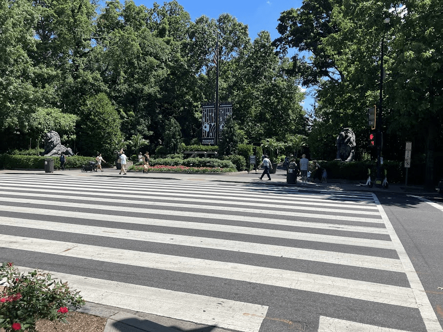 The entrance to the Zoo had the widest crosswalk I have ever seen. I would also like to point out two instances of misleading marketing in the above photo. First of all there are two large signs advertising that “The Pandas are coming!” When I saw this same ad on the Zoo’s website I interpreted it to mean that the Zoo was adding more Pandas to their existing collection. But no, I learned that the Zoo had to send their Pandas back to China, but they were going to get more. The Zoo still uses Pandas as a major part of their marketing. There are Panda signs everywhere, a Panda themed gift shop and restaurant, and a huge Panda statue, but no actual Pandas! There are also two large Lion statues sporting impressive manes at the entrance to the zoo. Although the zoo has one girl Lion, there are no males and no manes! So the moral of the story is, just because you see an animal prominently depicted at the entrance to the zoo, don’t count on actually seeing a live example!