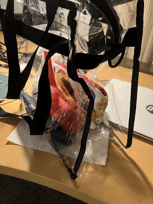 They only allowed clear bags into the arena. When I presented my transparent tote, the security lady insisted on opening and inspecting all of my smaller pouches. Fortunately, nothing got confiscated.