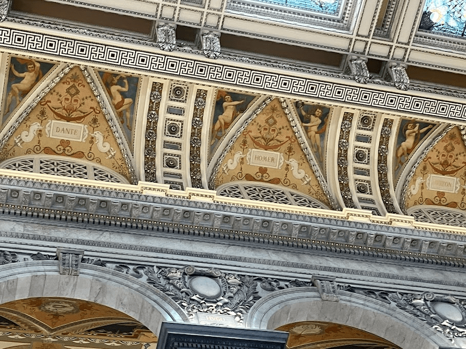 The names of famous authors were listed along the ceilings, including Shakespeare, Homer, and Moses.