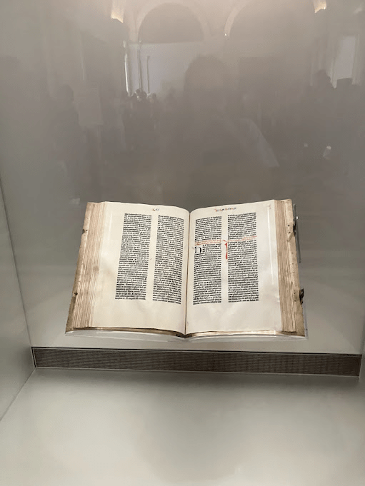 We got in line to see the reading room. While you waited, you could view the Gutenberg Bible.