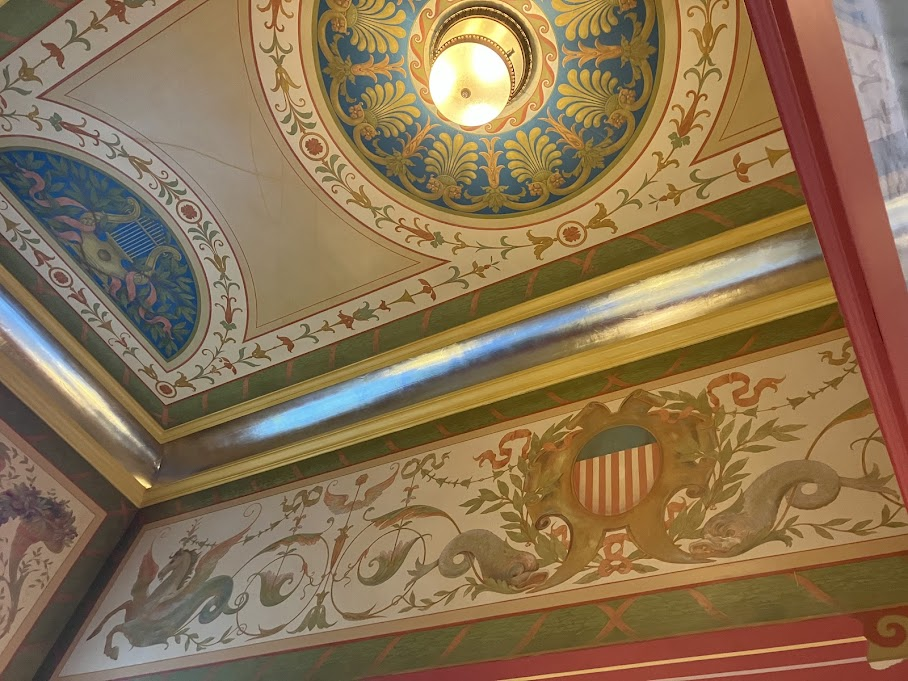 Our final stop before leaving was the restroom. Even this lowly destination was ornate with painted ceilings.